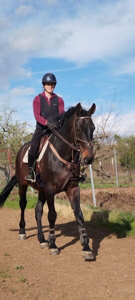 Nagy ló, könnyen kezelhető, leginkább igényes hobbi lónak ajánlanánk. Könnyen szállítható, jól idomított, gyerekek is könnyedén lovagolják síkon és ugráson is egyaránt. Tökéletes tanító ló, jelenleg egyesületi lóként dolgozik a Rider's Clubban.