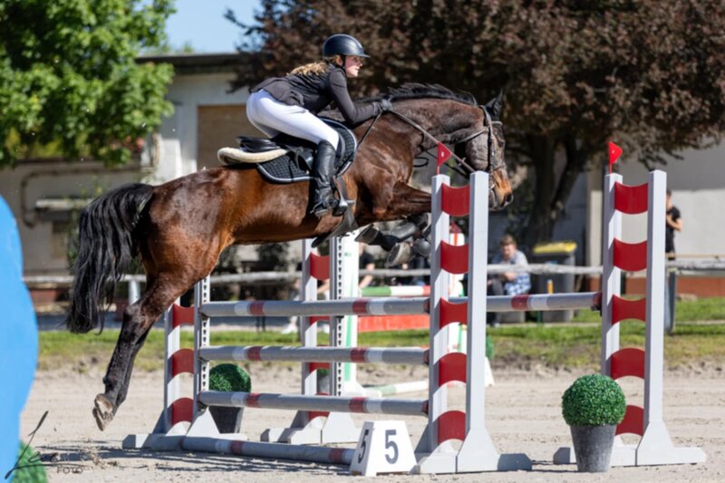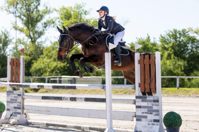 Pár hónapja kezdte díjugrató karrierjét, rendkívül kiegyensúlyozott, könnyen lovagolható, gyönyörű kis ló. Nagyon kényelmes, könnyen szállítható, problémamentesen lovagolható lovak közt is . Mutatós és jól idomított, síkon és ugráson egyaránt. Bizalommal ajánljuk kezdő lovasok vagy ifik részére. Jelenleg 110 centiméteren versenyzik, főként stílus versenyeken.