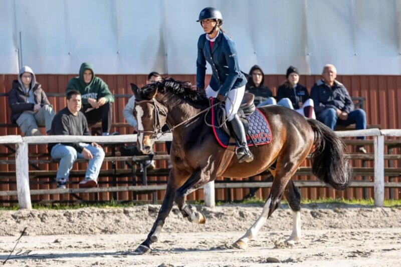 Pár hónapja kezdte díjugrató karrierjét, rendkívül kiegyensúlyozott, könnyen lovagolható, gyönyörű kis ló. Nagyon kényelmes, könnyen szállítható, problémamentesen lovagolható lovak közt is . Mutatós és jól idomított, síkon és ugráson egyaránt. Bizalommal ajánljuk kezdő lovasok vagy ifik részére. Jelenleg 110 centiméteren versenyzik, főként stílus versenyeken.
